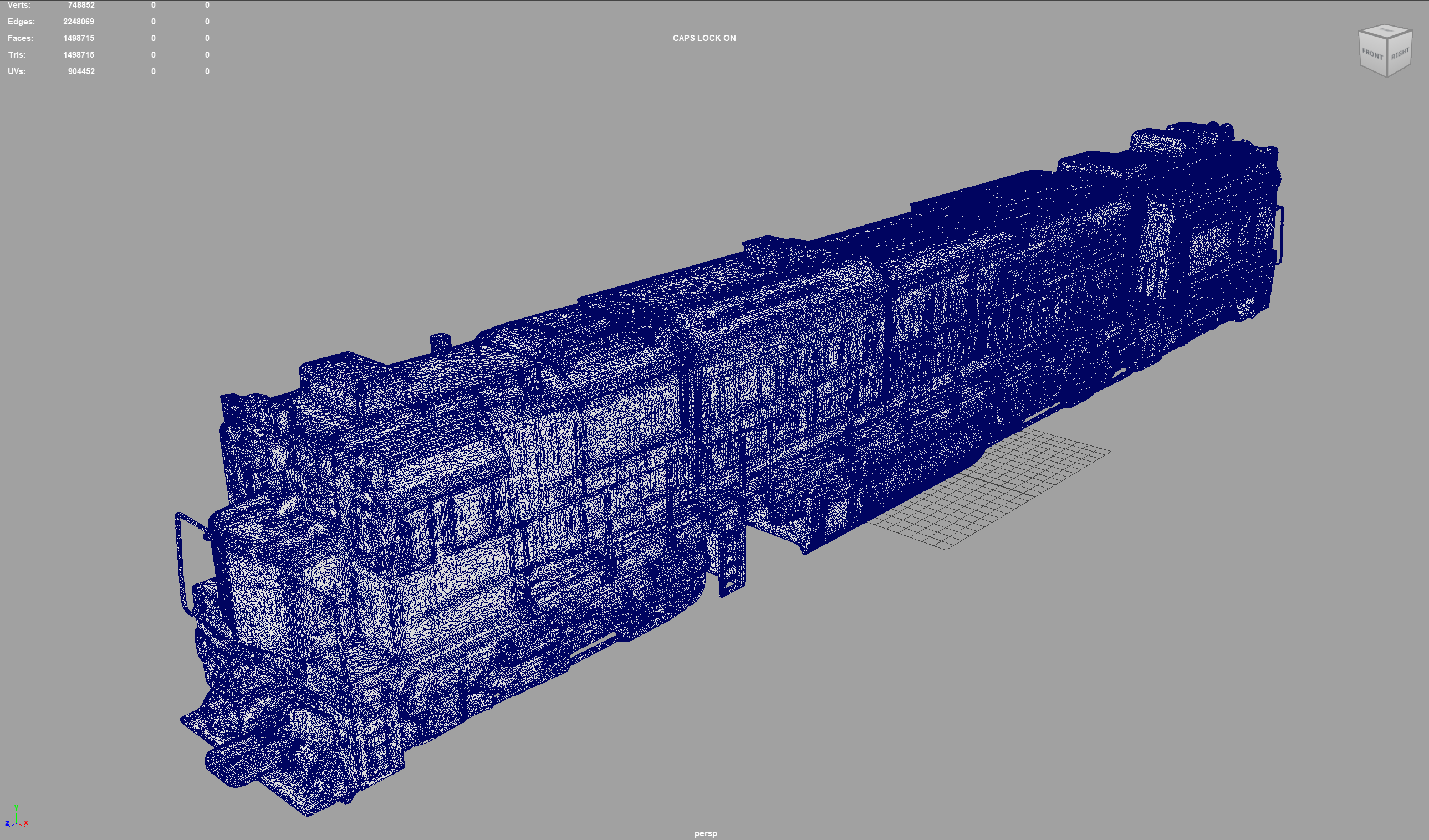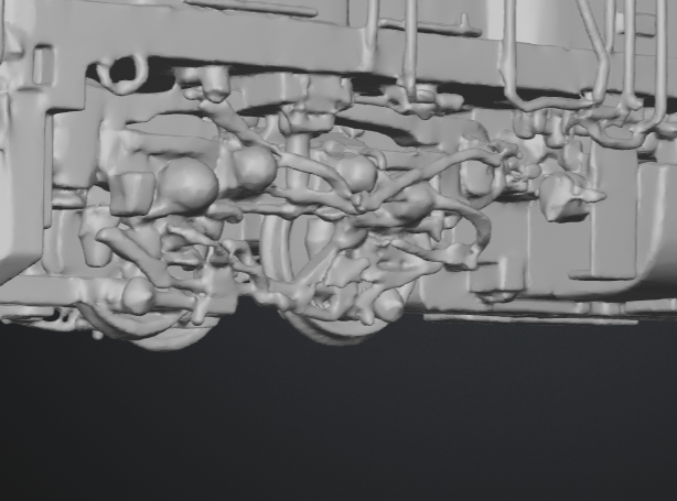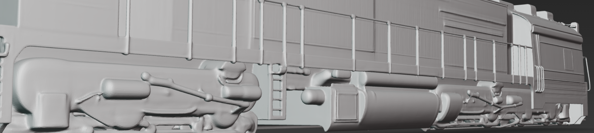 Even considering that a freight train is a complex structure, the form isn't perfect, and the file size hits a massive 130MB due to the unoptimized mesh.