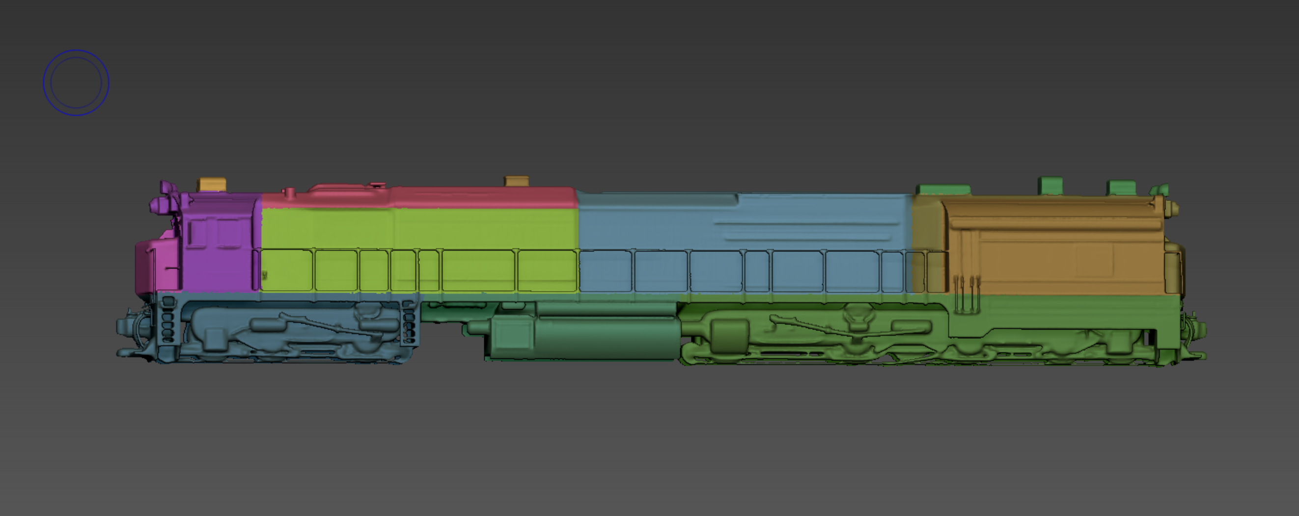 AI typically outputs the entire model as a single, merged mesh. By utilizing ZBrush’s 'Masking' and 'PolyGroups' features, you can isolate distinct components—such as separating the wheels from the train carriage.
