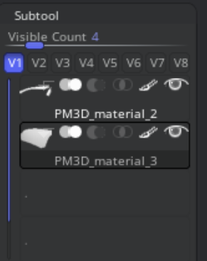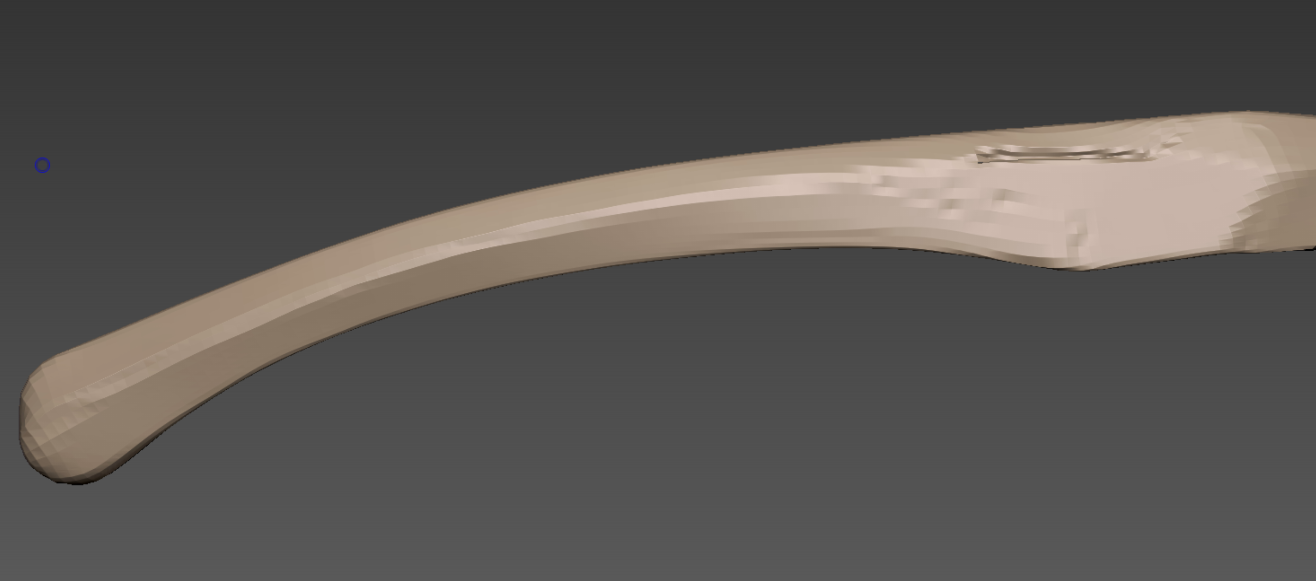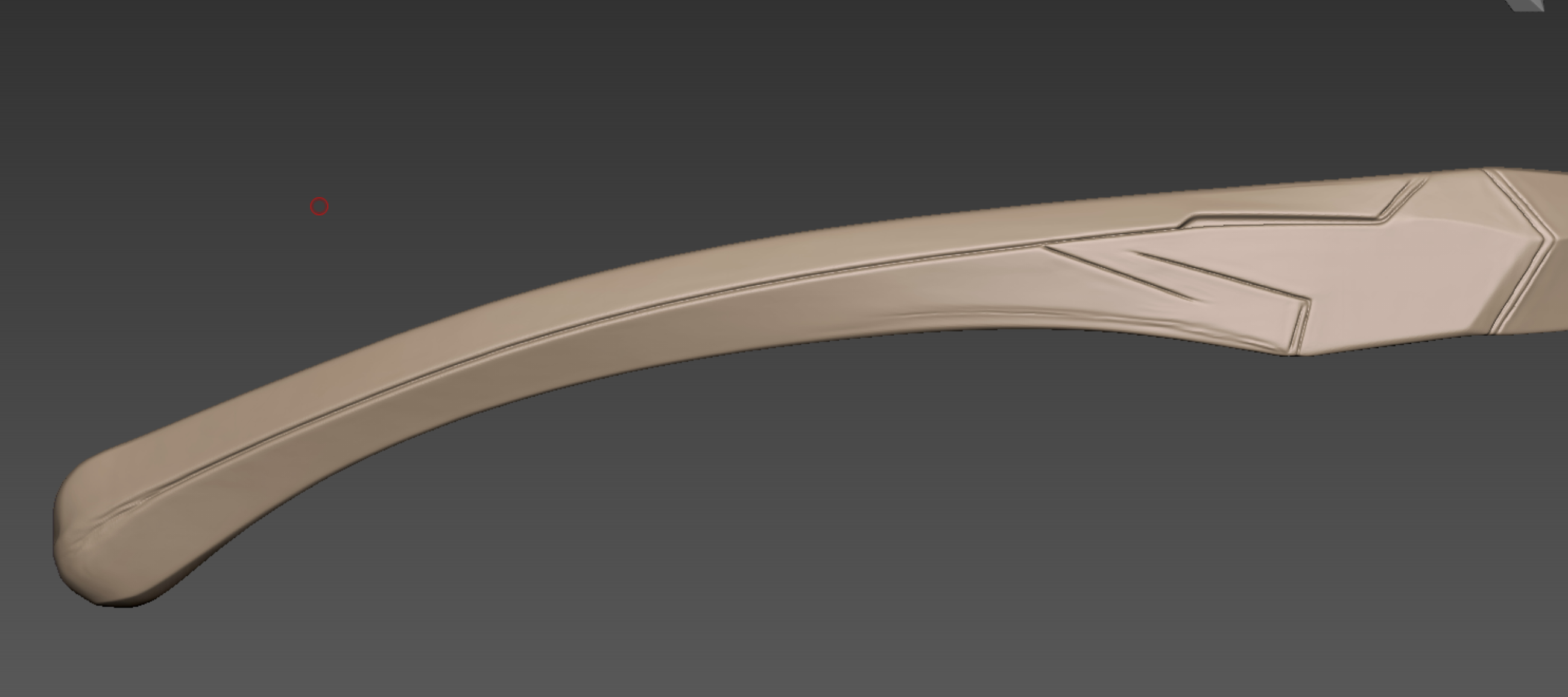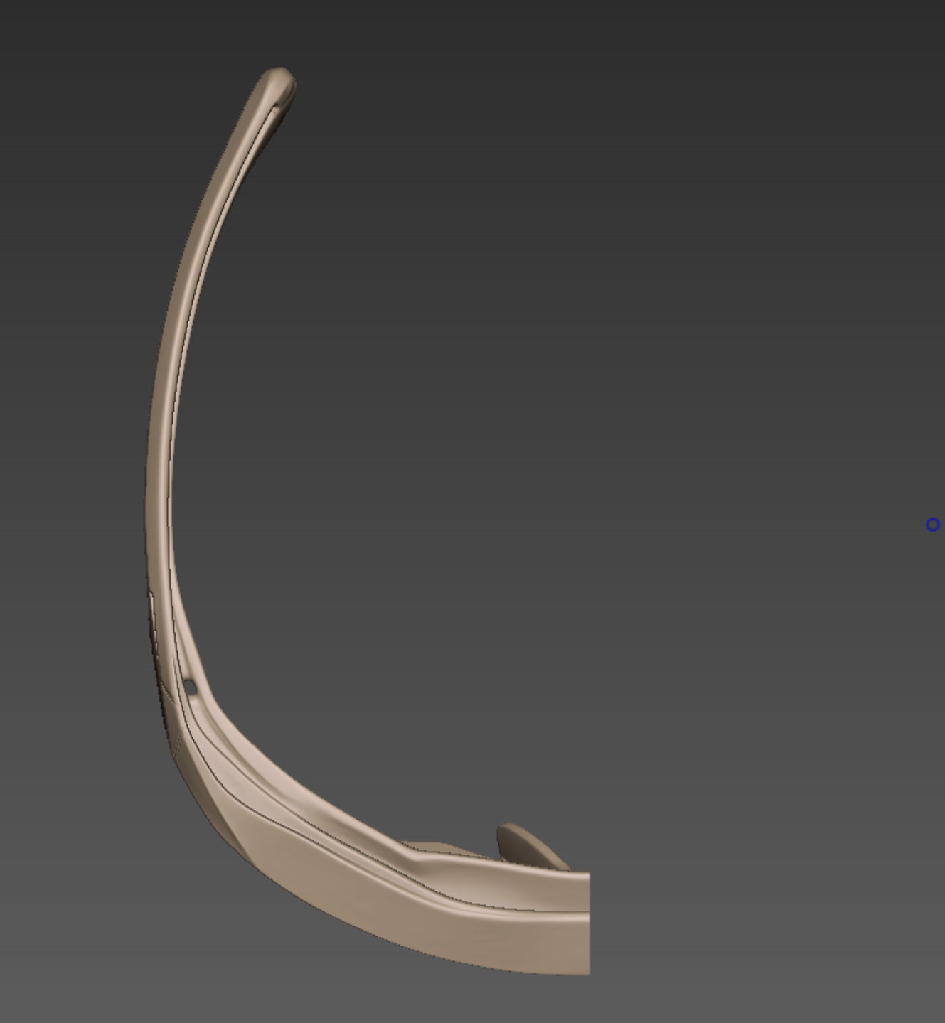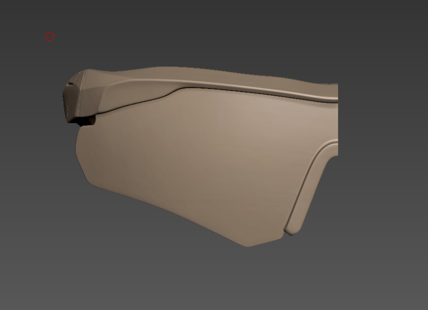 Here is the view from the ZBrush viewport. First, I’m going to separate the merged AI model into two parts—the lenses and the frames—using the Grouping function I mentioned earlier.