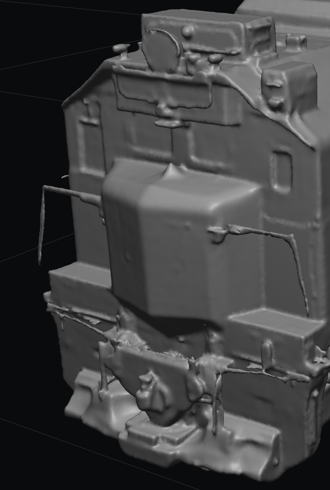 Using the AI-generated freight train shown earlier as an example, let me explain the two key ZBrush features I utilized for this task.